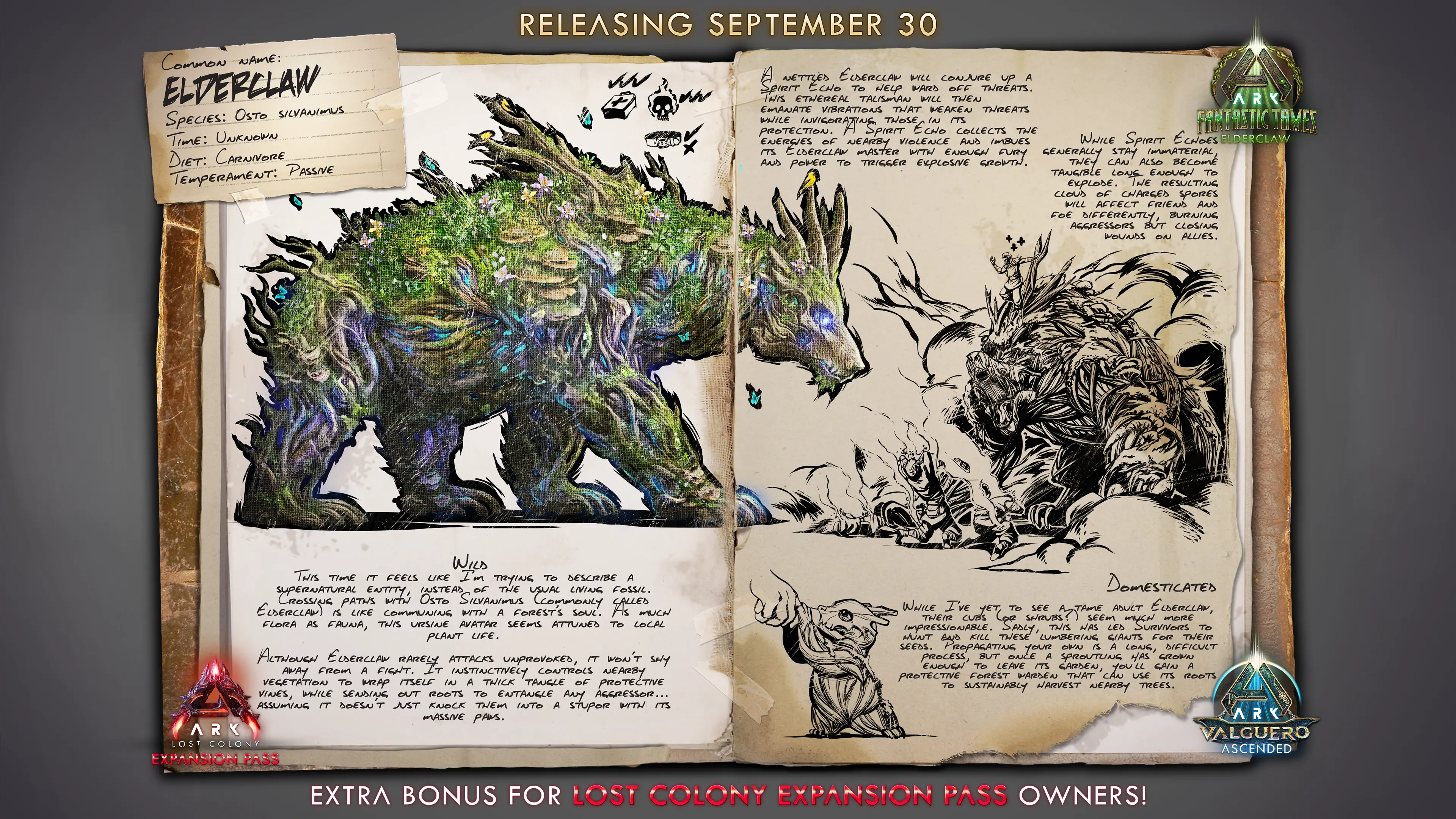 While I've yet to see a tame adult Elderclaw, their cubs (or shrubs?) seem much more impressionable. Sadly, this has led Survivors to hunt and kill these lumbering giants for their seeds. Propagating your own is a long, difficult process, but once a sproutling has grown enough to leave its garden, you’ll gain a protective forest warden that can use its roots to sustainably harvest nearby trees.