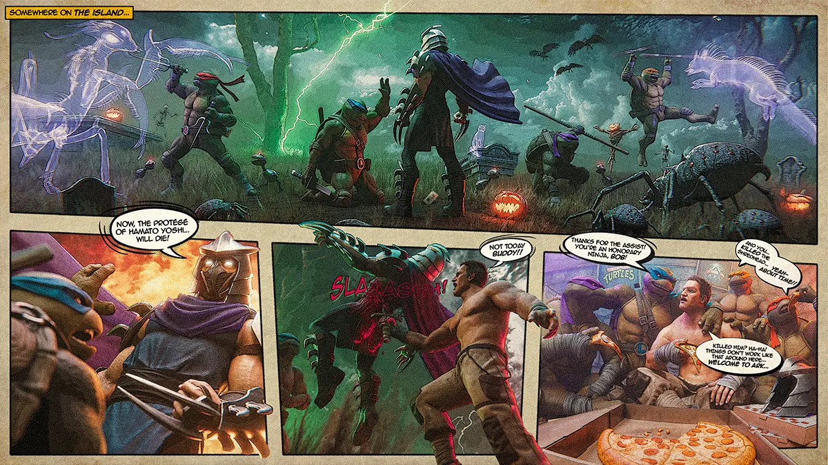 Tie on your ninja masks, grab a slice of pizza, and unleash your favorite half-shelled heroes or diabolical villains with the 'ARK x Teenage Mutant Ninja Turtles' Cosmetic Pack filled with over 40 bodacious cosmetics! See what’s oozin’ onto the ARK right here.